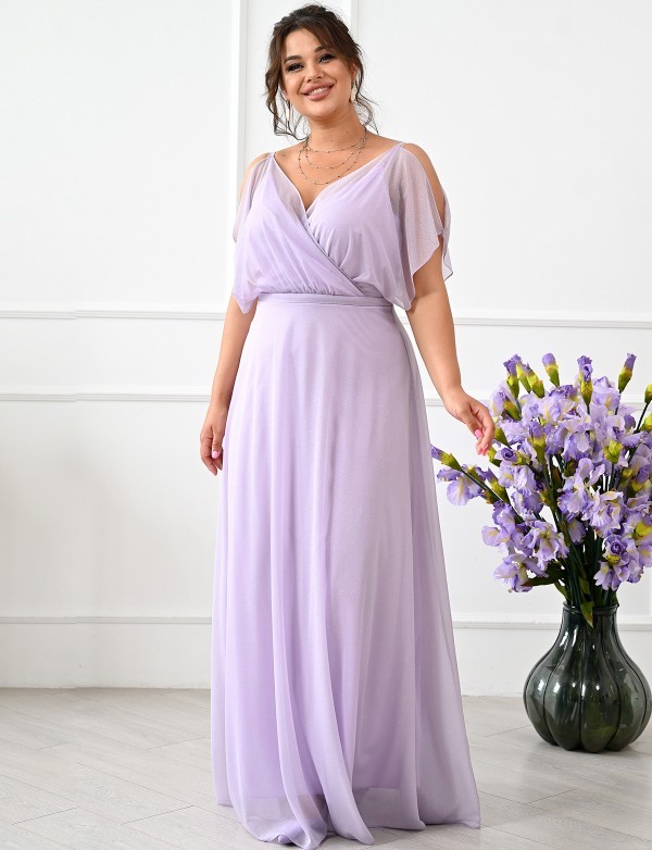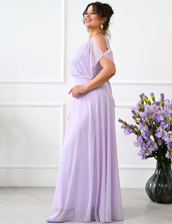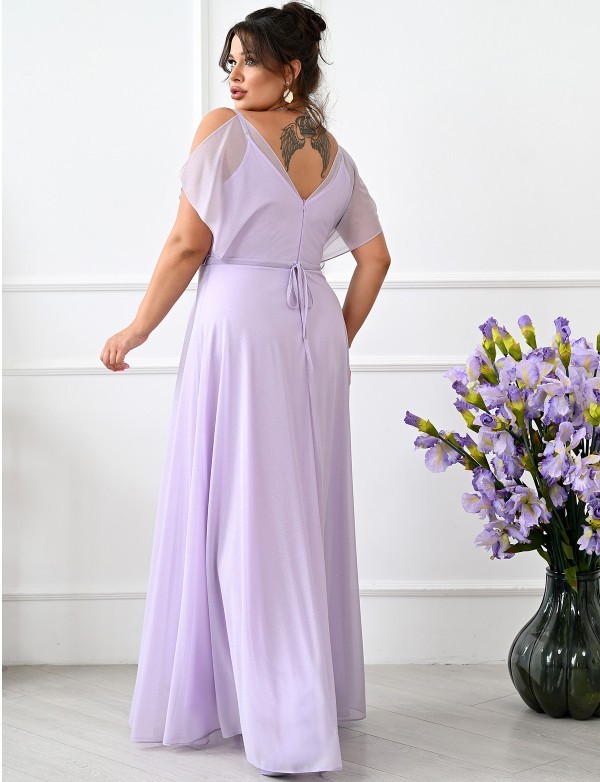Вечернее нарядное шифоновое лавандовое платье в пол большого размера