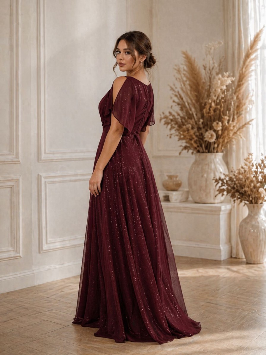 Вечернее нарядное шифоновое бордовое платье в пол большого размера