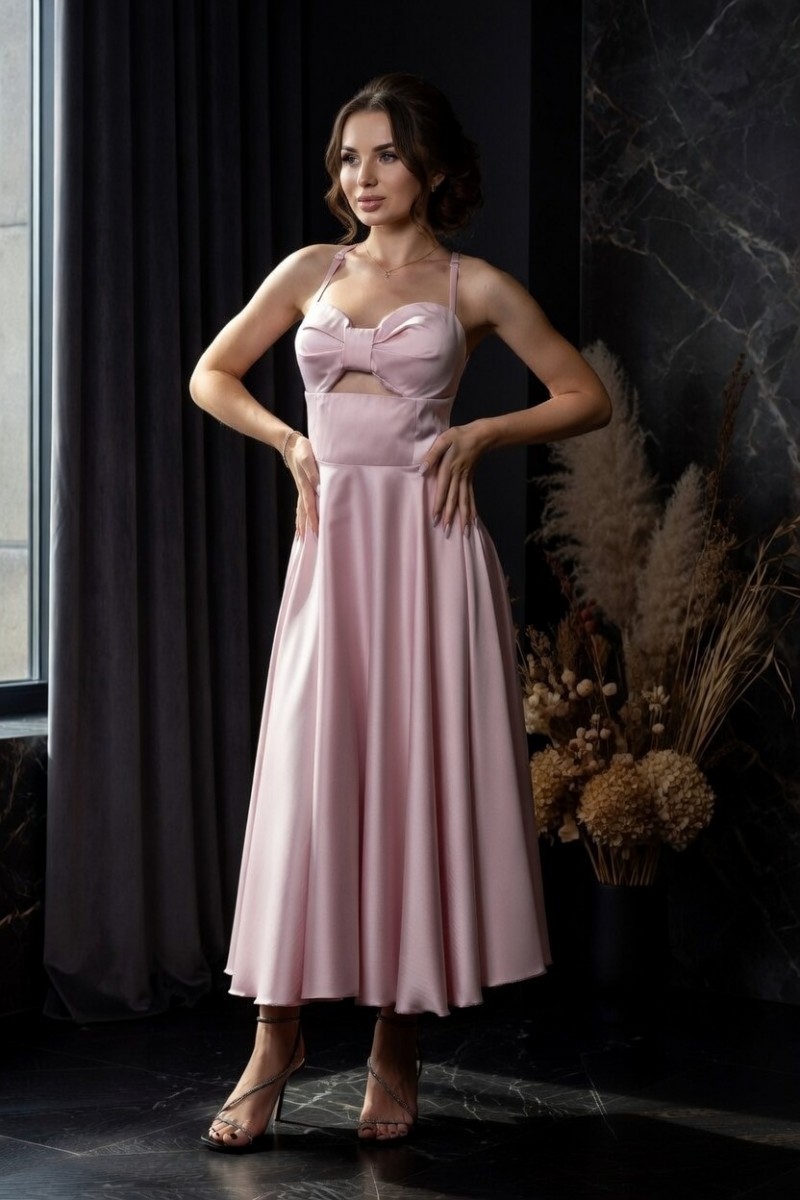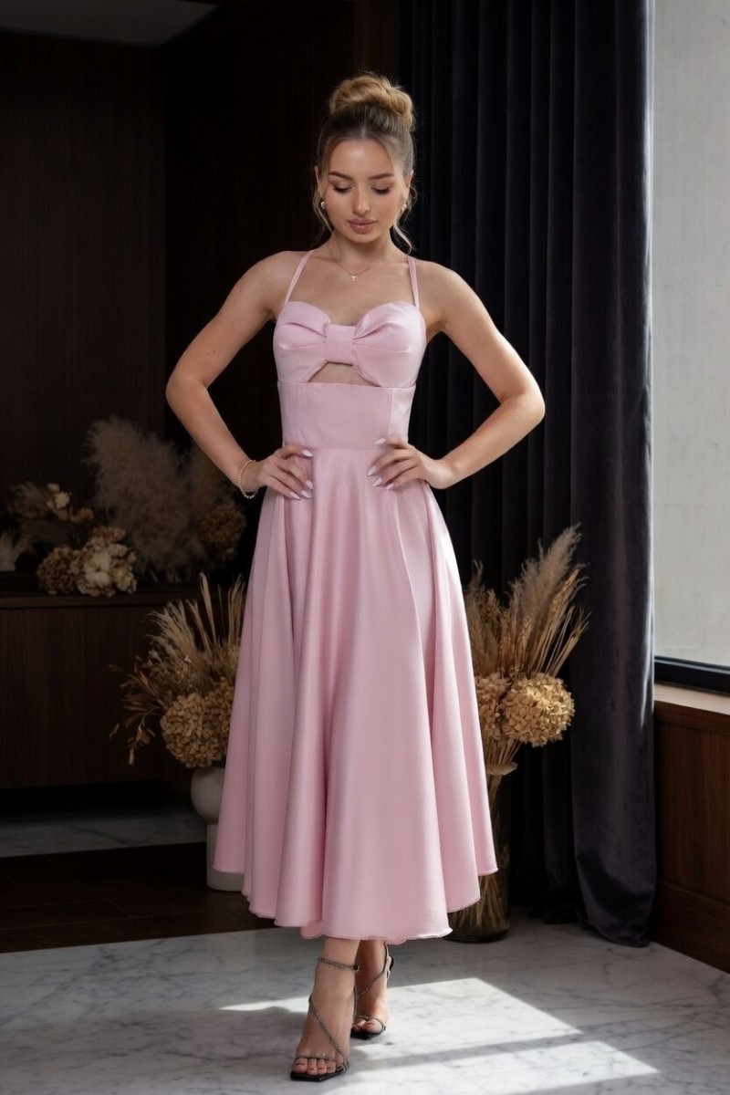 Произведите фурор на следующем мероприятии в этом очаровательном коктейльном платье силуэта «фит энд флэр» светло-розового цвета с шикарным вырезом спереди. Это платье миди с открытыми плечами имеет завышенную талию, создавая элегантный силуэт, идеально подходящий для любого случая — от летней вечеринки до роли самой яркой гостьи или свадебного платья.