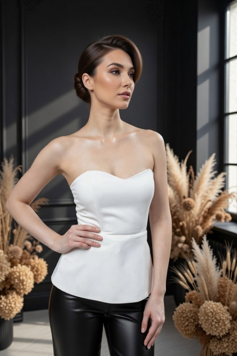 Атласный белый корсет с баской и шнуровкой