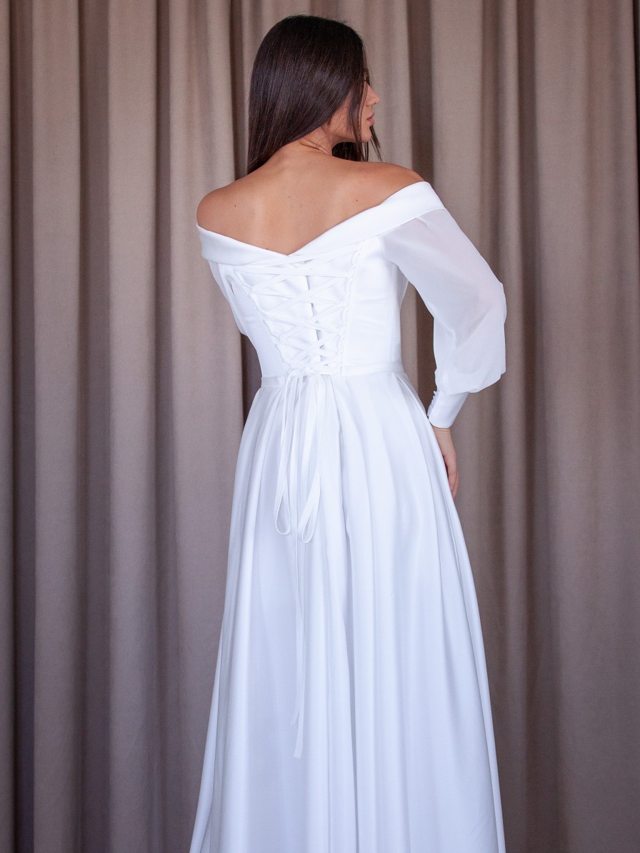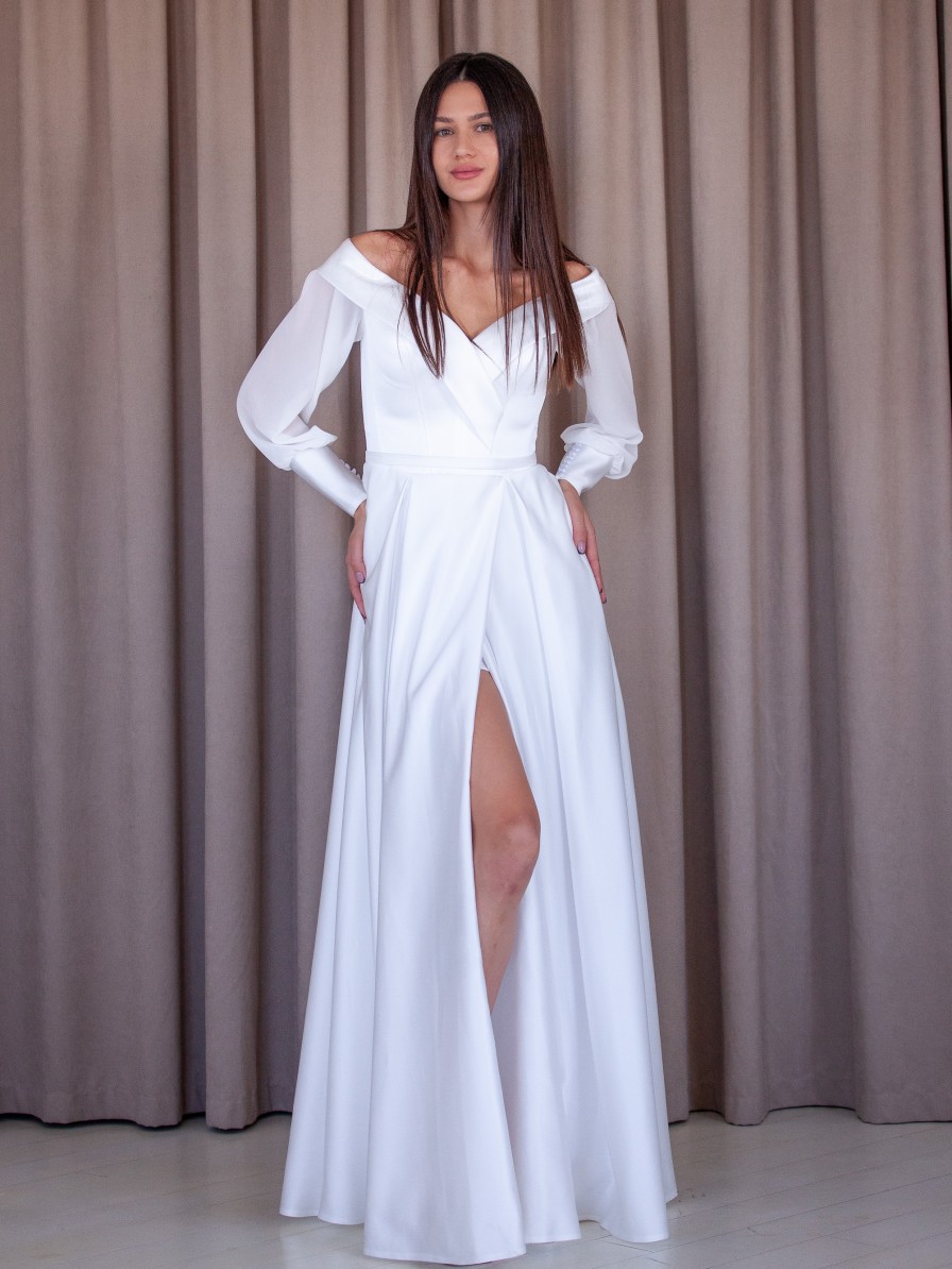 Женственная, привлекательная и в тоже время невероятно стильная – свадебное длинное атласное корсетное платье на длинный рукав помогает раскрыть все самое лучшее в женщине. И даже если фигура далека от идеала – это не проблема! Ведь длинное белое корсетное вечернее платье на выпуской или свадьбу куда больше чем просто красивый наряд. В нем предусмотрено все: цвет, фасон, длина и даже материал из которого пошито одеяние. К тому же, свадебное длинное атласное корсетное платье на длинный рукав имеет особенный покрой, который позволяет женщине с одной стороны продемонстрировать достоинства своей фигуры, а с другой - скрыть недостатки. Где-то длиннее, а где-то короче, где-то в обтяжку, а где-то наоборот свободнее – на обладательницах разного типа фигуры и роста длинное белое корсетное вечернее платье на выпуской или свадьбу сидит по-разному. Но в тоже время, свадебное длинное атласное корсетное платье на длинный рукав – это всегда очень стильно, оригинально и невероятно женственно! В интернет-магазине Onlady длинное белое корсетное вечернее платье на выпуской или свадьбу всегда есть в наличии и в нужном размере. Также здесь можно не только купить, но и примерить красивое платье. Если вы находитесь не в Киеве, а, например, в Одессе, Львове, Харькове, Донецке, Днепропетровске или за пределами Украины, этот необычайный и очень красивый наряд, как длинное белое корсетное вечернее платье на выпуской или свадьбу, вы всегда сможете купить онлайн, не выходя из дома. Именно в интернет-магазине Onlady свадебное длинное атласное корсетное платье на длинный рукав всегда есть во всех размерах и только по самым выгодным ценам. Быстрая и бесплатная доставка по Киеву и Украине!Свадебное длинное атласное корсетное платье на длинный рукав
