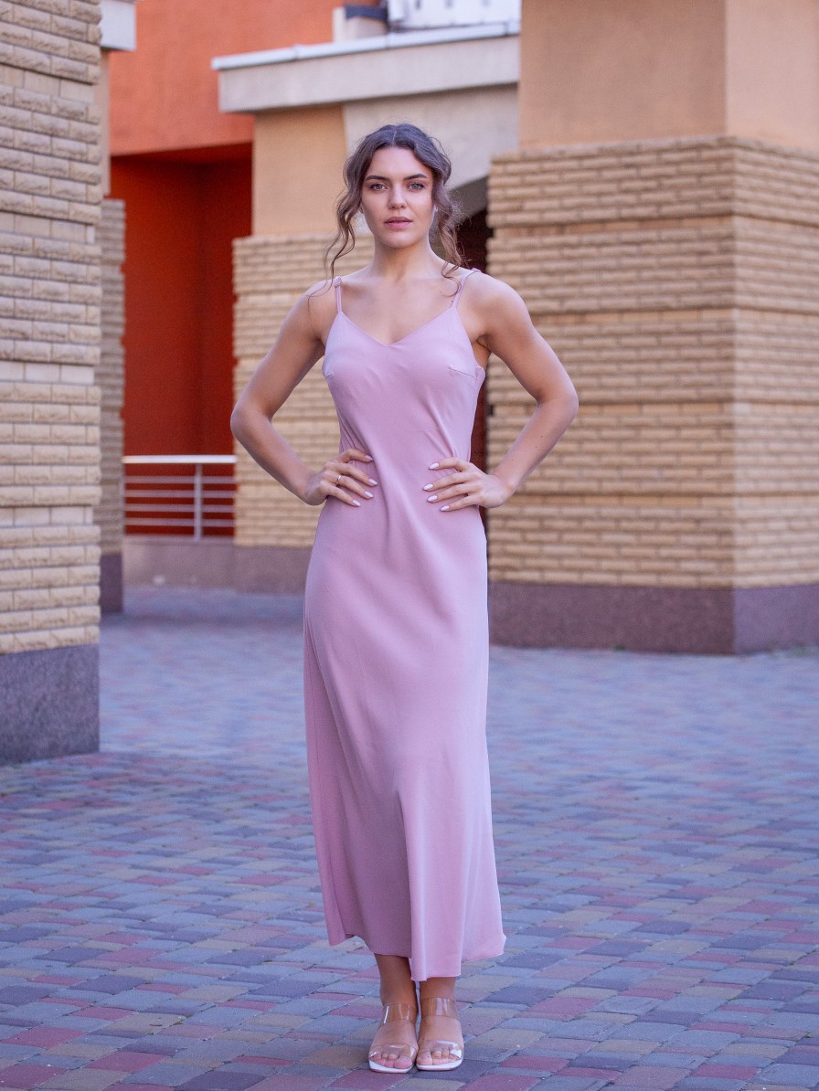Это пленительное длинное платье - все о вас: - Цвет: румянец пастельно-розового оттенка - очаровательный штрих, который украсит любое мероприятие. Полуматовая ткань придает достаточно блеска, не подавляя естественного сияния. Плюсы для тех, кто любит немного мерцания под солнцем! - Стиль и повод: Примите его смещенный силуэт, естественная линия талии прекрасно подчеркивает вашу фигуру. Оно легко переходит из дневного в вечернее время - подумайте об офисных часах, превращающихся в коктейли, или о подружке невесты на свадьбе на закате. Однотонный узор обеспечивает элегантность, неподвластную времени, и подходит для любой обстановки, в то время как его регулярный крой без труда подстраивается под различные формы тела.