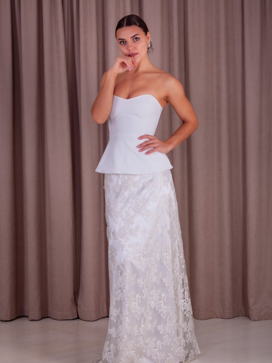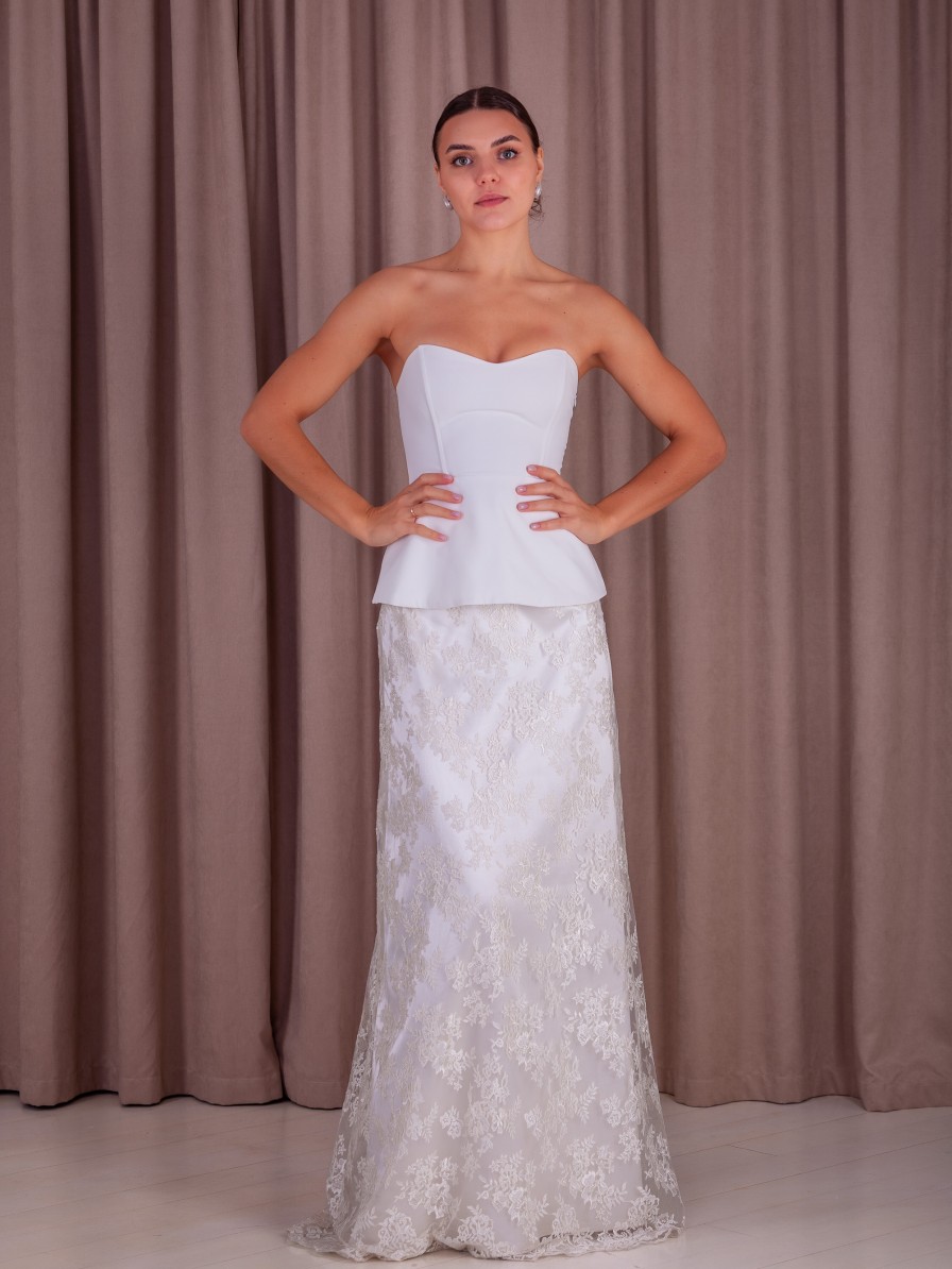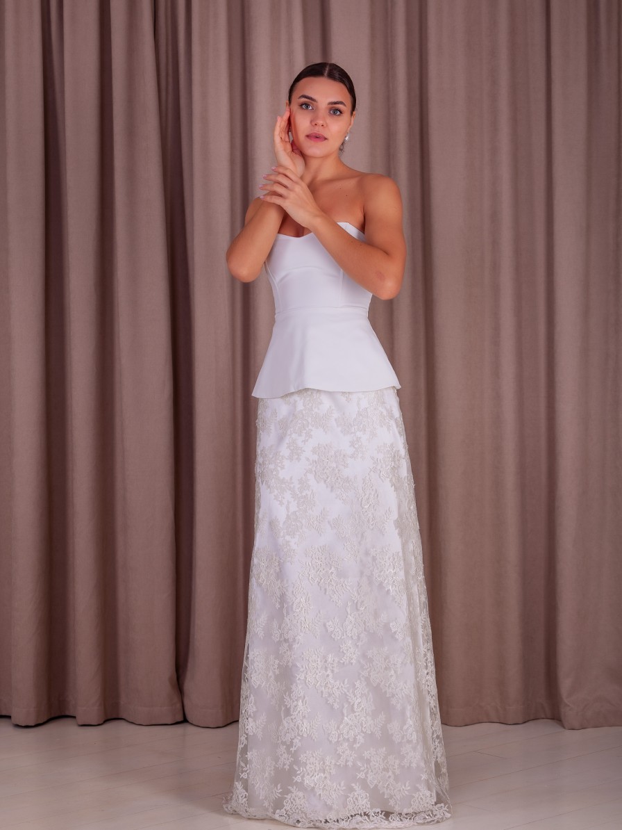 Молочное вечернее корсетное платье двойка: корсет и кружевная юбка