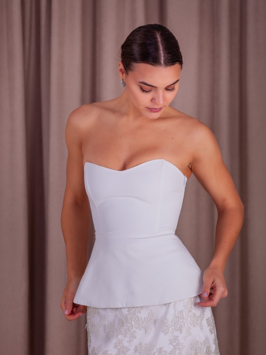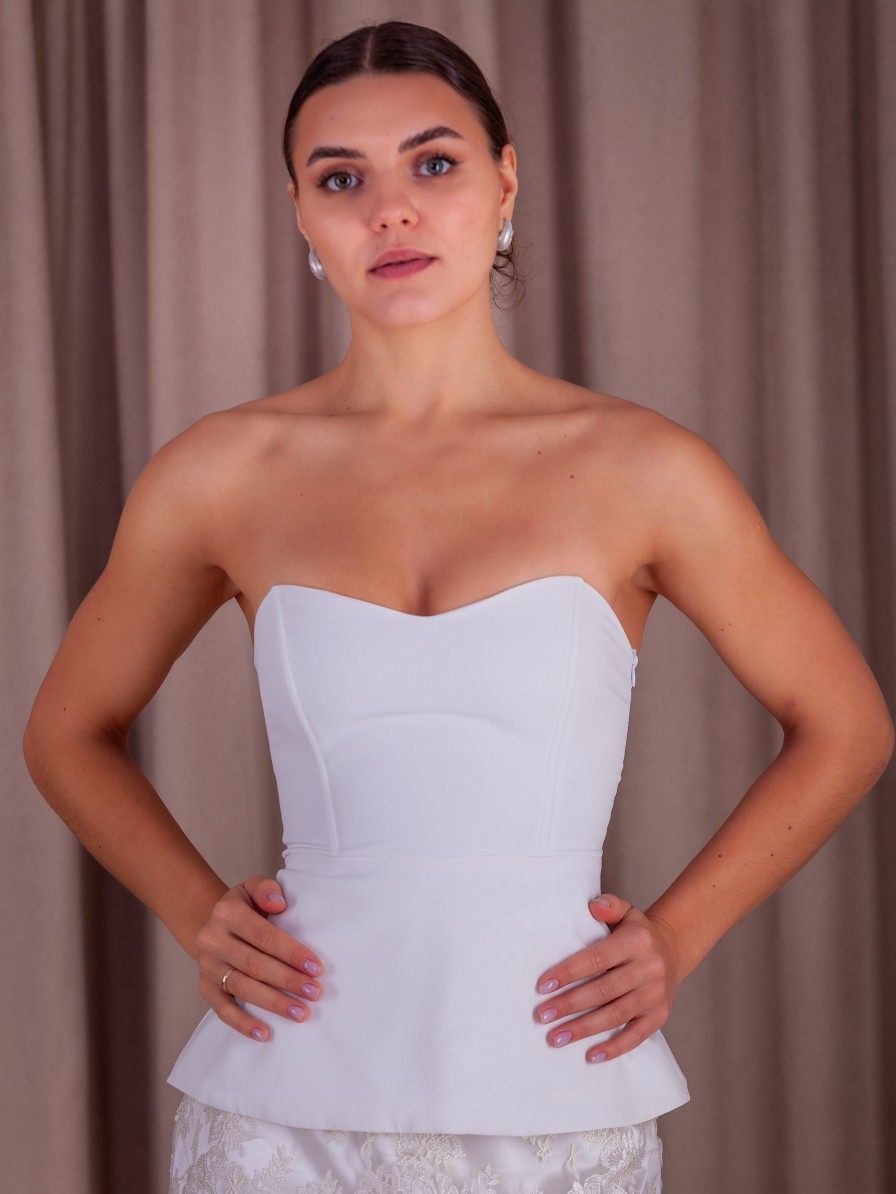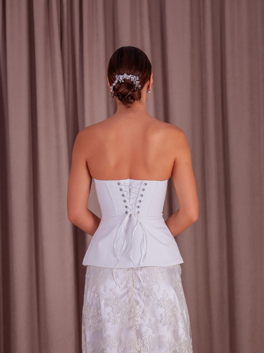 Молочное вечернее корсетное платье двойка: корсет и кружевная юбка