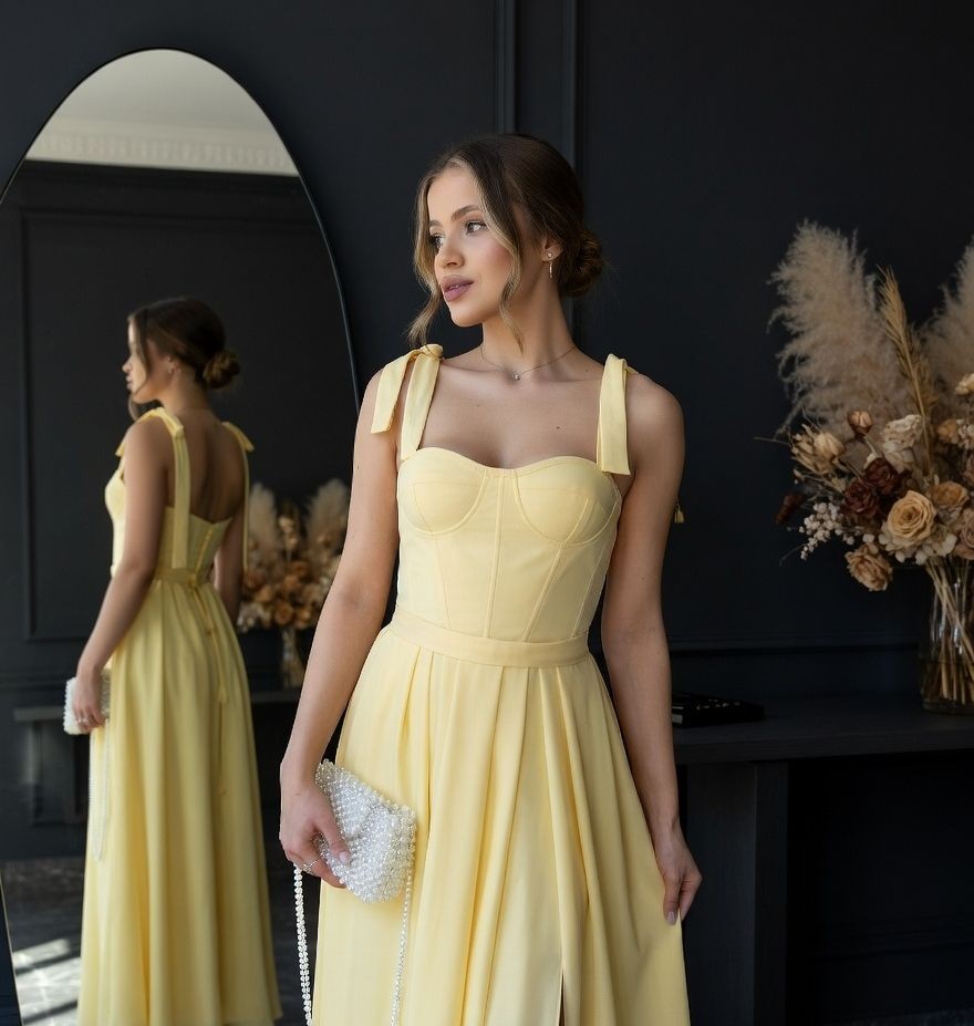 Вечернее желтое платье c корсетом