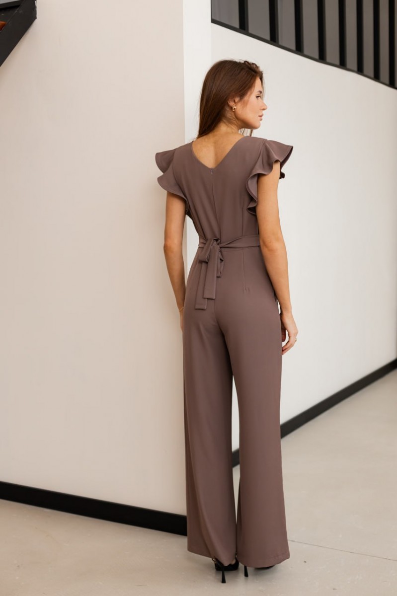 Вечерний женский комбинезон с поясом цвета капучино, фото 1