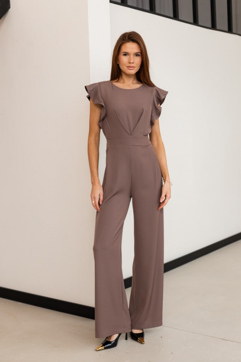 Елегантный вечерний комбинезон на короткий рукав цвета капучино