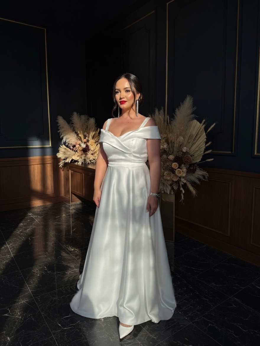 Окунитесь в элегантность с этим потрясающим длинным белым атласным платьем макси, идеально подходящим для любого особого случая. Представьте, как вы грациозно скользите по залу в этом платье А-силуэта с расклешенной юбкой, подчеркивающем вашу талию и выгодно выделяющем фигуру. Это красивое платье длиной до щиколотки выполнено из шелковистой атласной ткани с легким блеском, что делает его идеальным для летних вечеров или осенних вечеринок.
