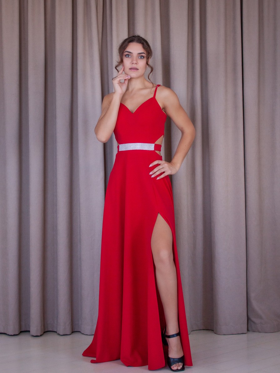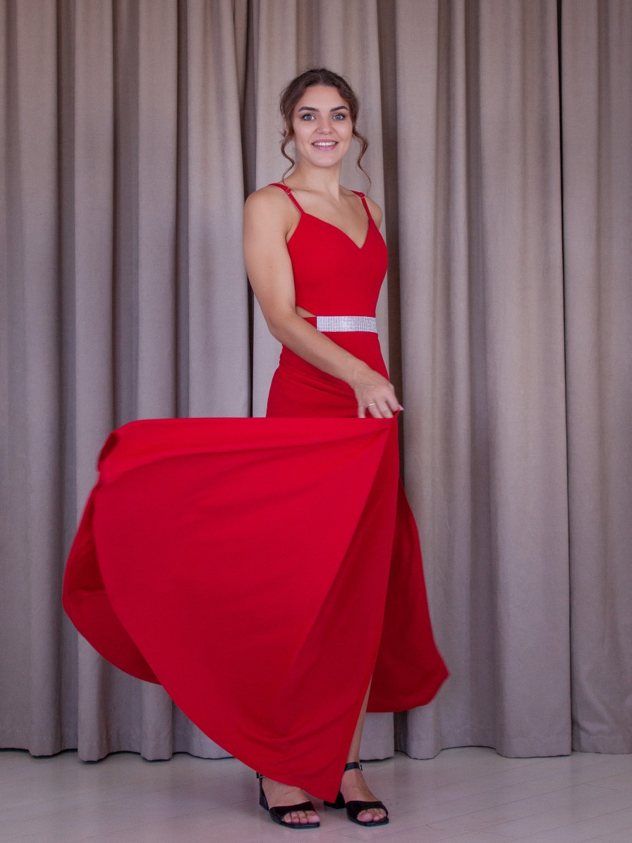 Красное вечернее платье в пол, подходит для выпускного или для гостьи на свадьбу