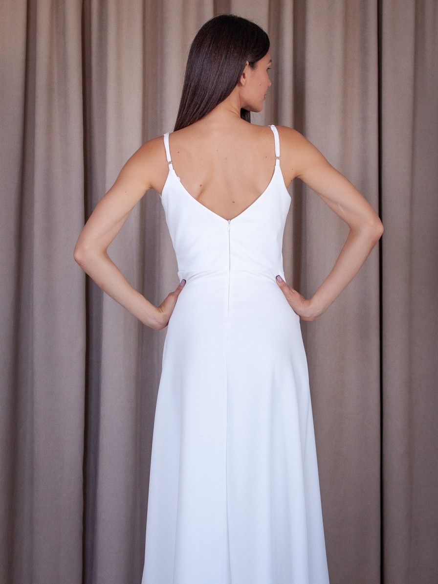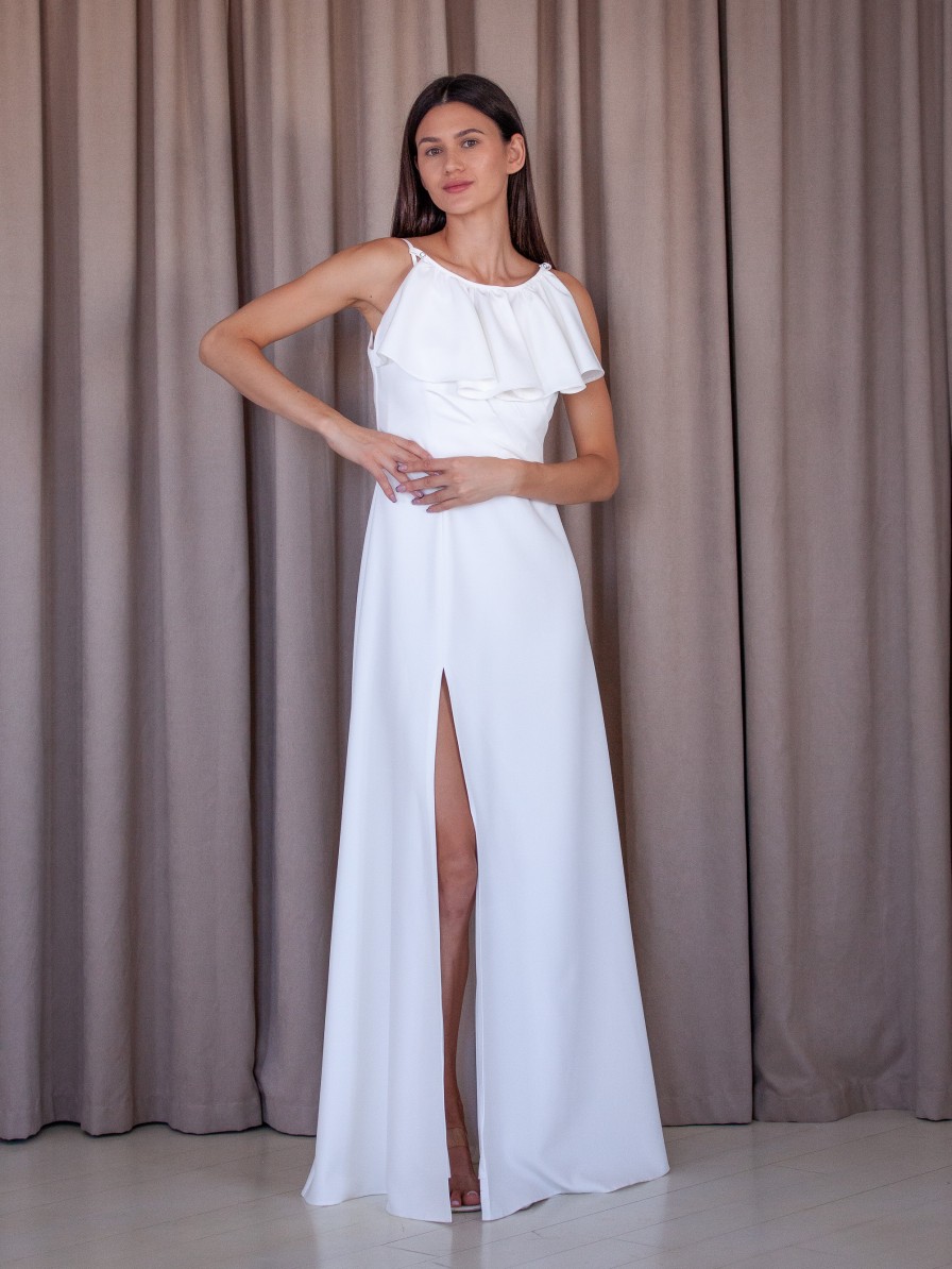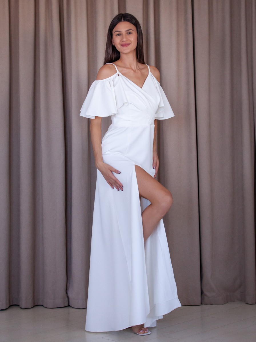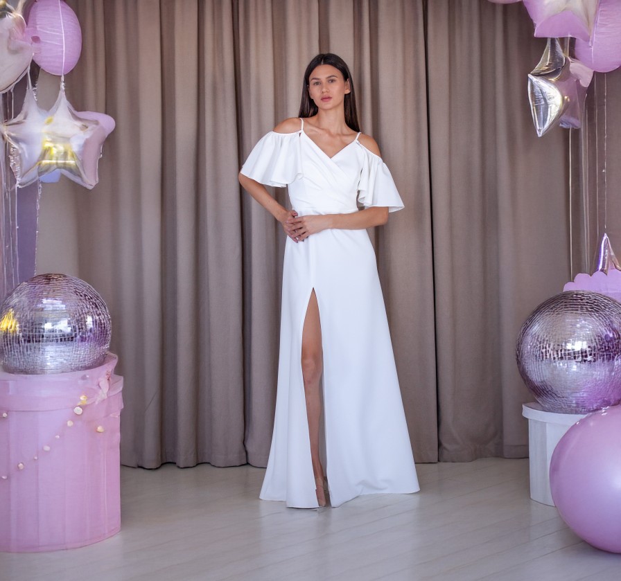 Белое вечернее платье в пол с дополнительными рукавами, которые можно снимать