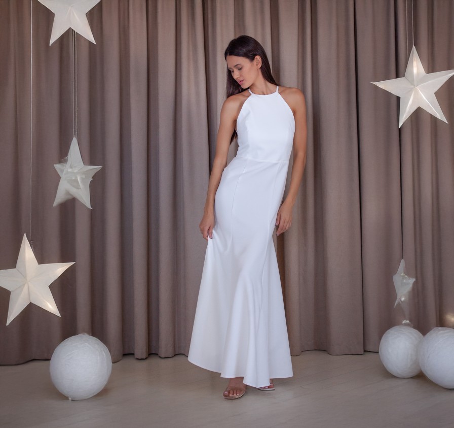 Облегающее белое платье русалка