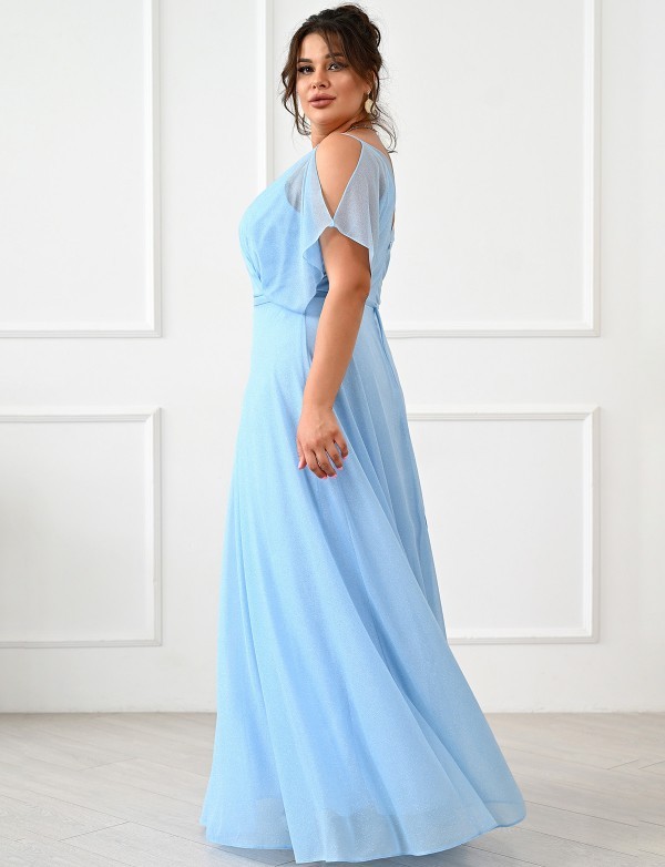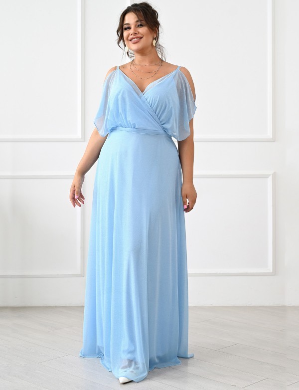 Вечернее нарядное шифоновое голубое платье в пол большого размера