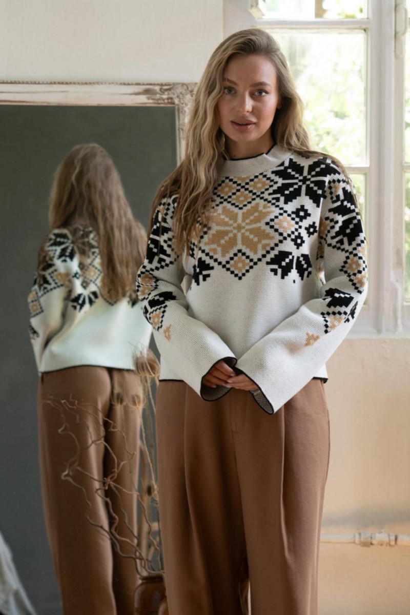 Теплый вязаный свитер оверсайз с орнаментом "вышиванка"