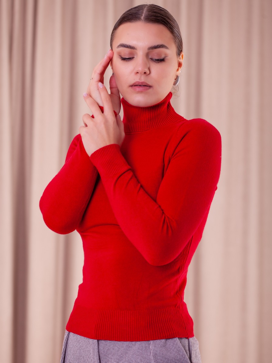 Красный теплый гольф водолазка с кашемиром и ангорой