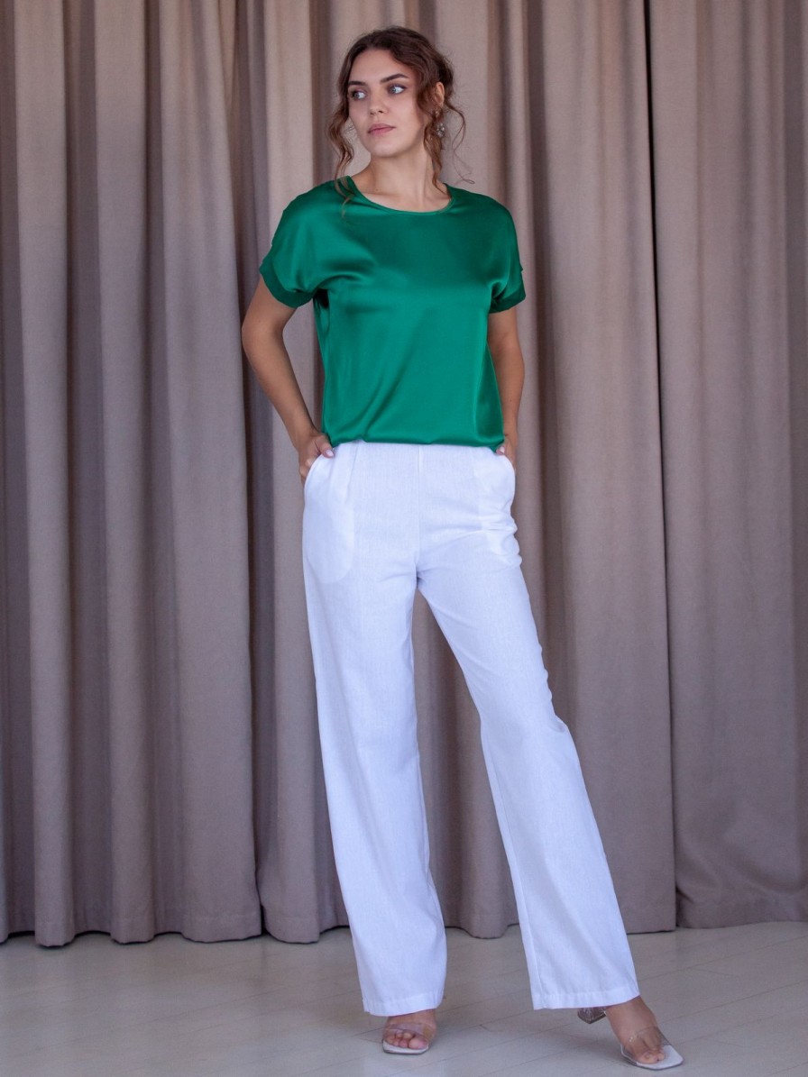 Летняя шелковая футболка однотоного темно зеленого цвета