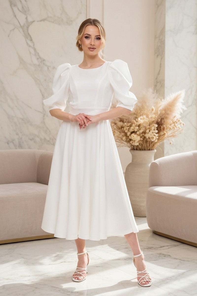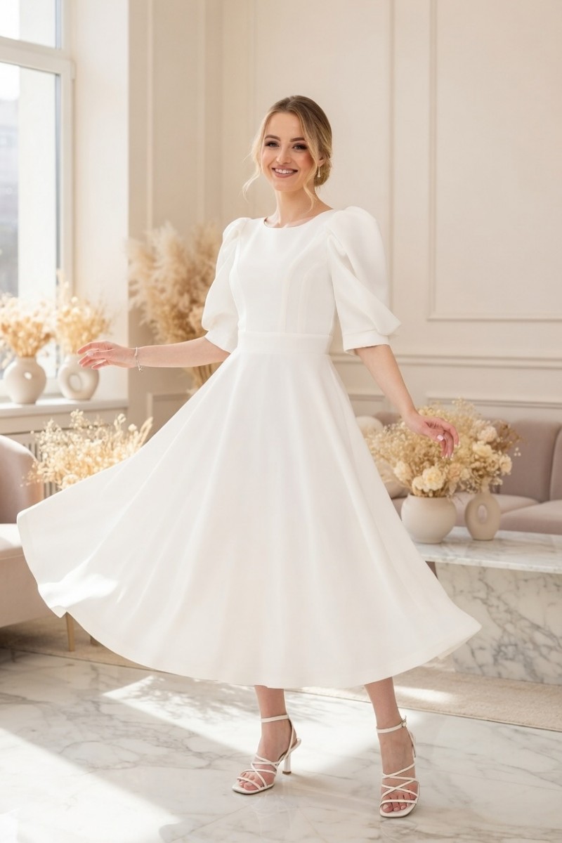Наше белое платье имеет удачный крой и А-силуэт, подчеркивающий вашу природную талию, подчеркивая все нужные места, умаляя любые мелкие недостатки. Длина миди придает нотки элегантности, оставаясь в соответствии с современными тенденциями моды.