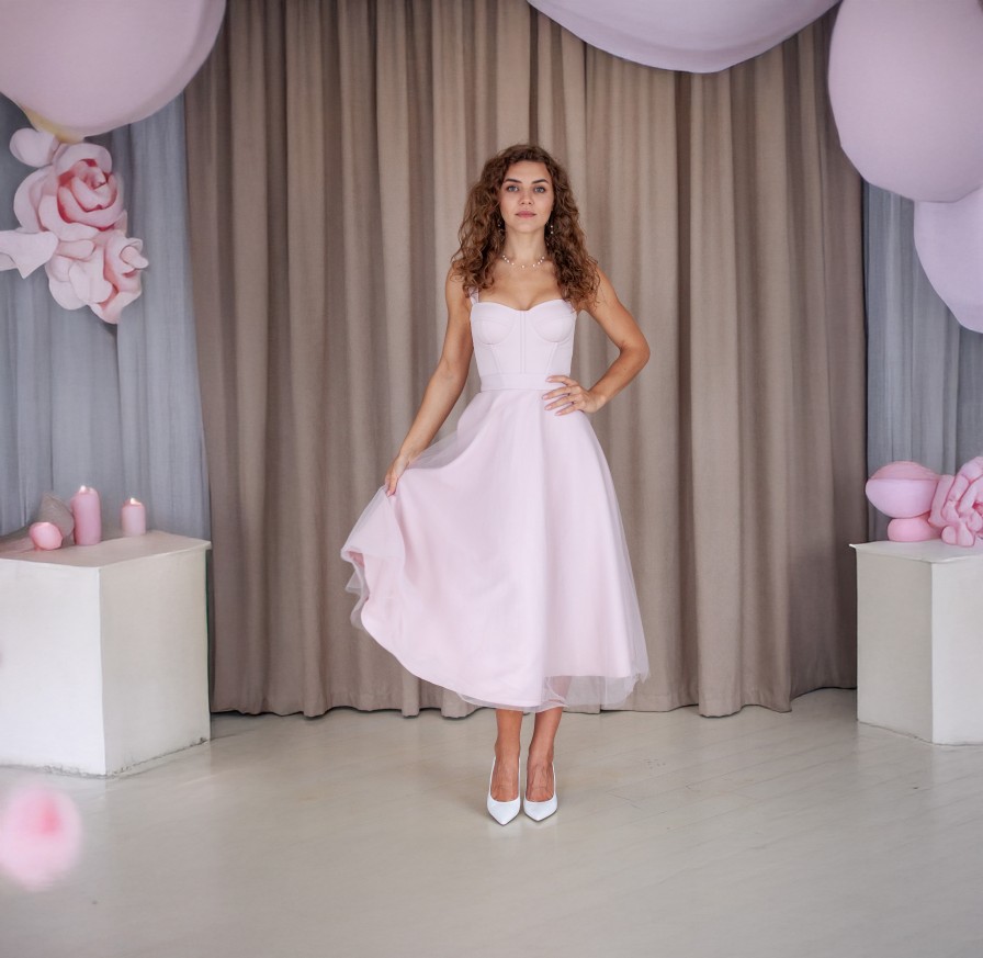 Корсетное платье миди с фатиновой юбкой в два слоя