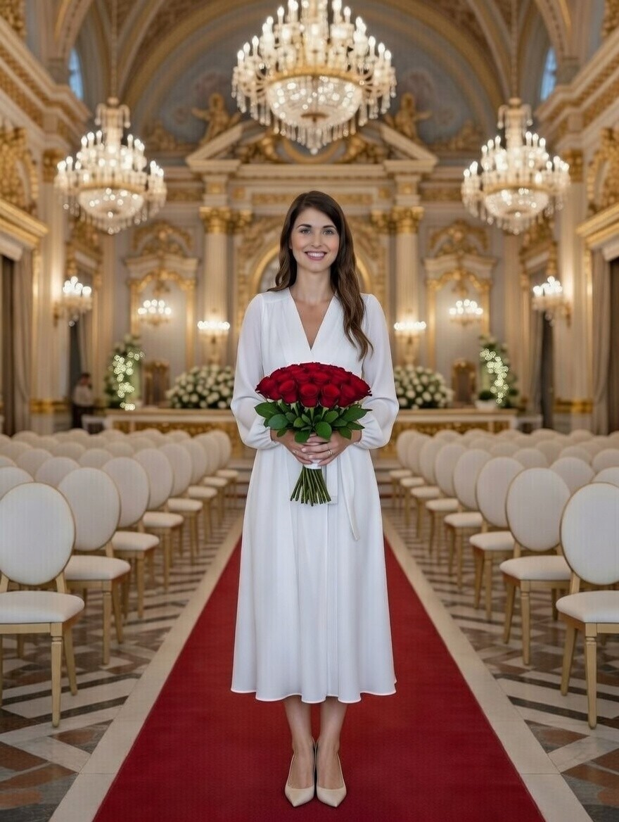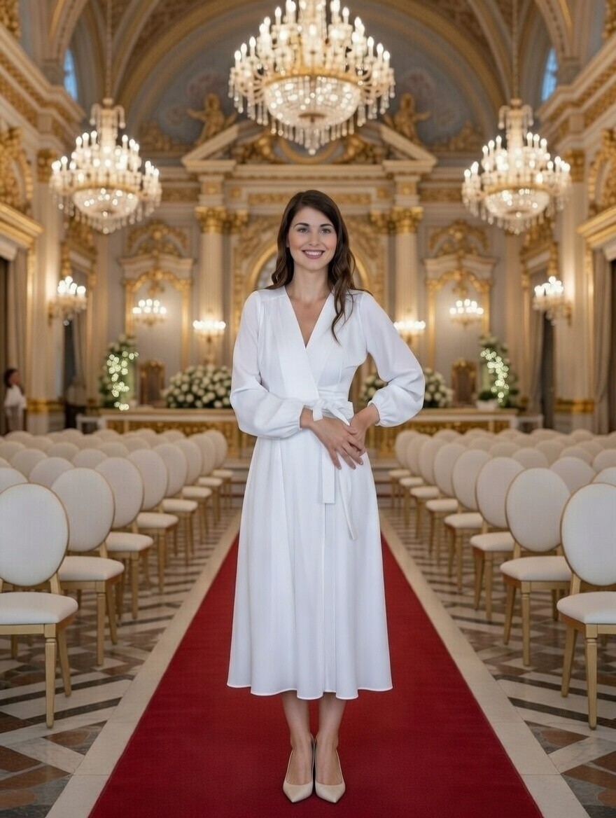 Это потрясающее белое атласное платье — ваш билет в мир королевской роскоши на каждом особом мероприятии!