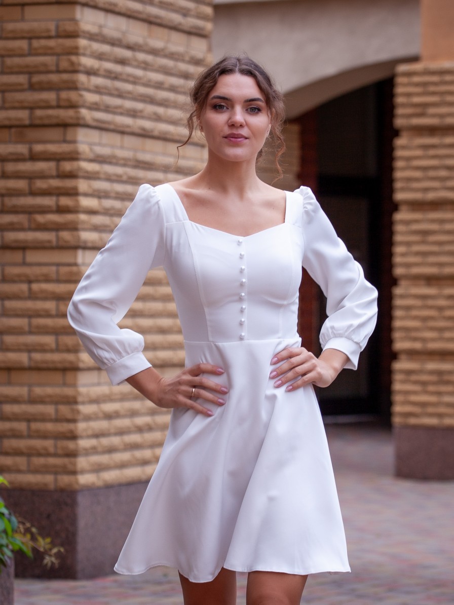 Короткое белое платье с длинным рукавом, идеально на свадьбу или день рождения