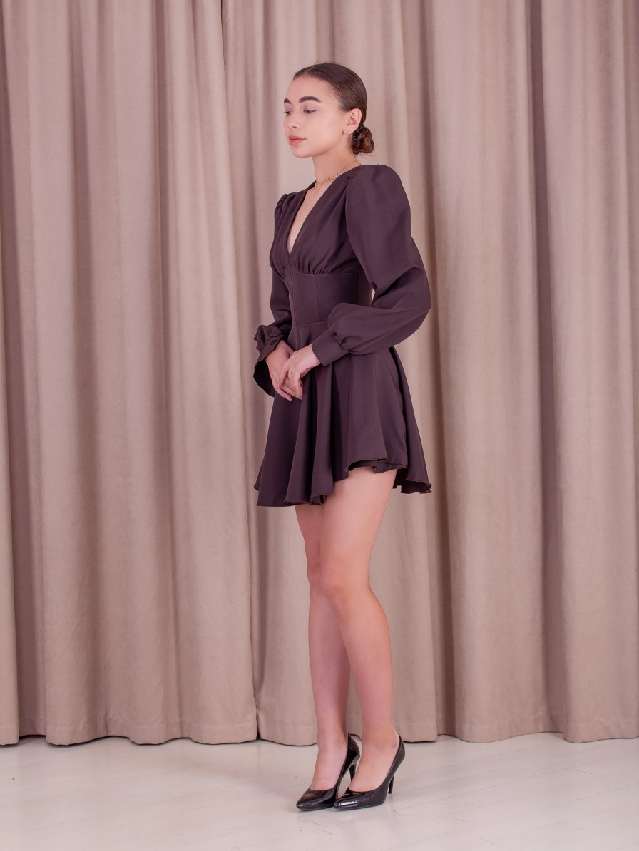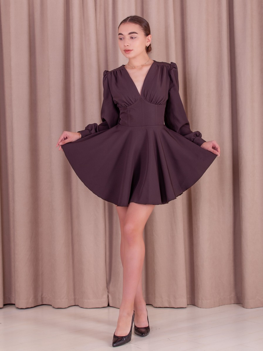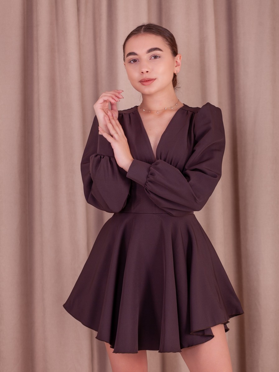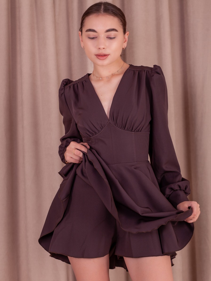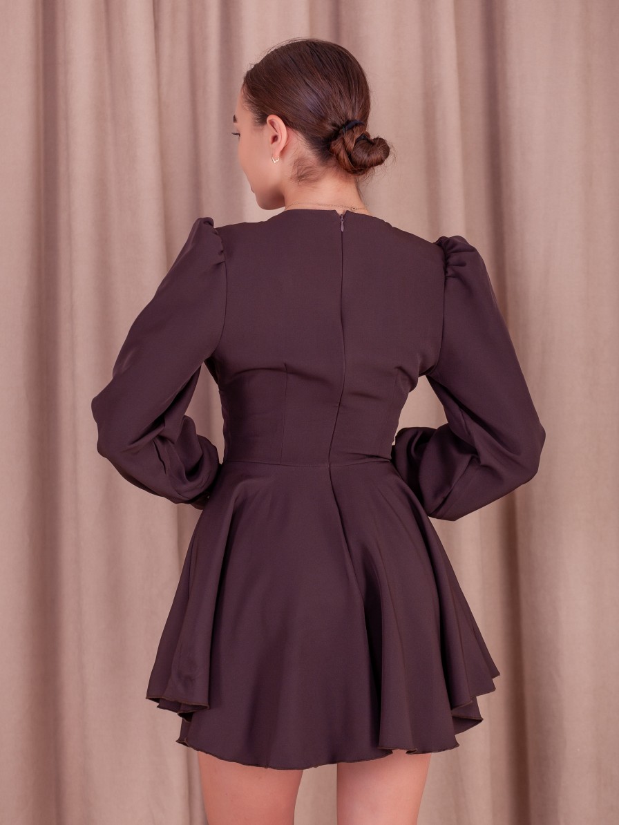 Нарядное коктейльное платье-шорты шоколадного цвета