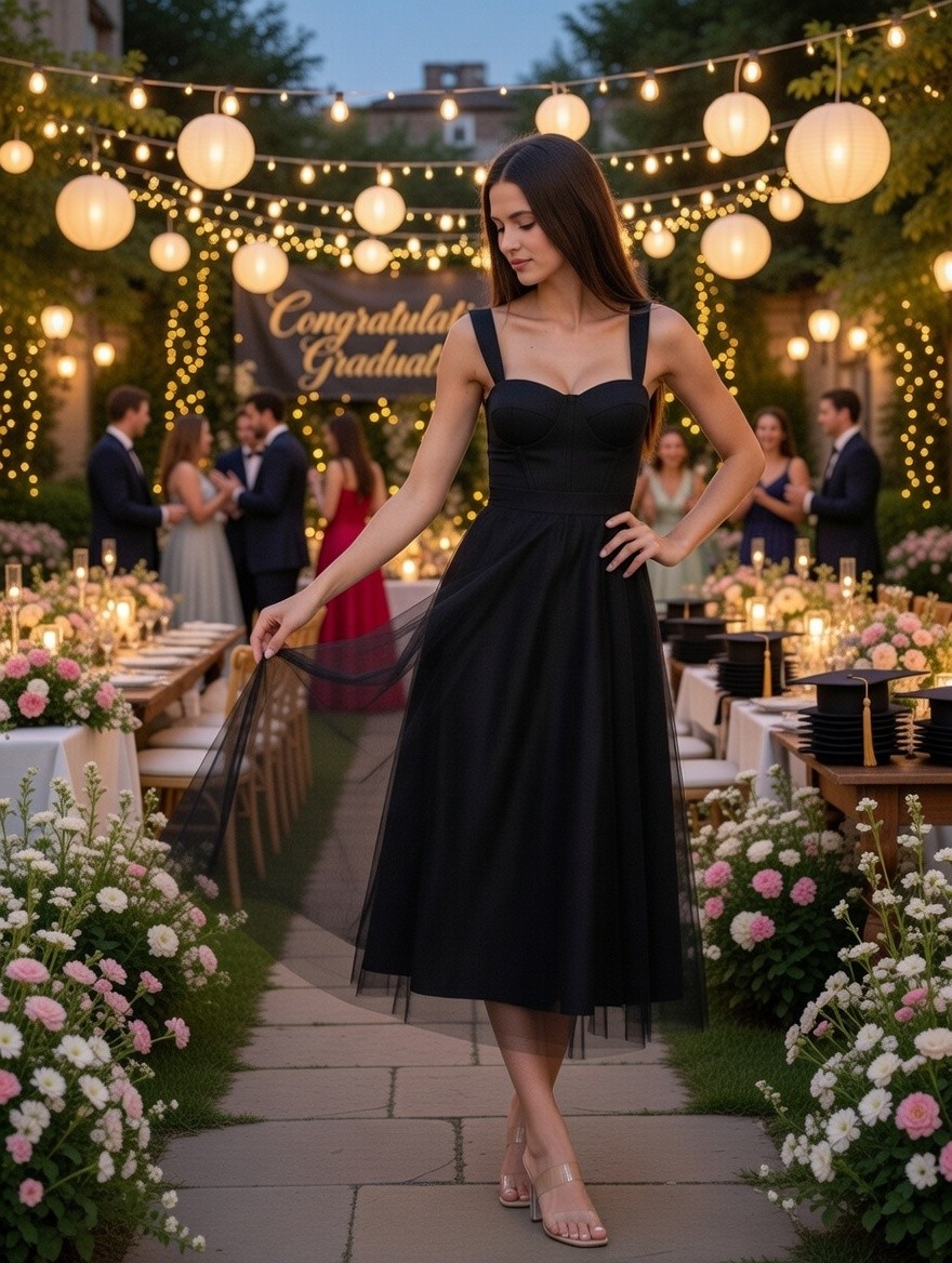В центре внимания – это черное миди-платье без рукавов А-силуэта, ваш идеальный выбор для любого особого случая. Идеальное платье с вырезом «сердечко», с естественной линией талии и съемным узким поясом, создающим силуэт «песочные часы», который вам обязательно понравится. Чувствуйте себя уверенно на любом мероприятии – от летних вечеринок до осенних свадеб.