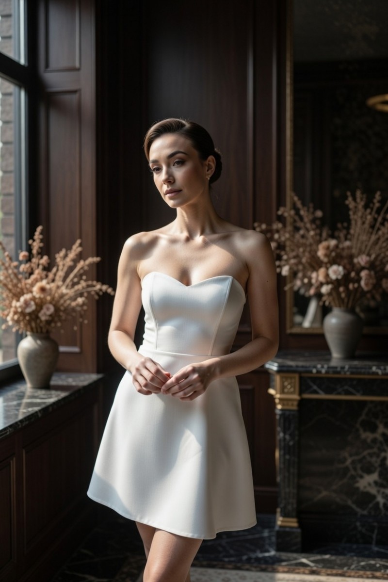 Белое платье мини с открытыми плечами
