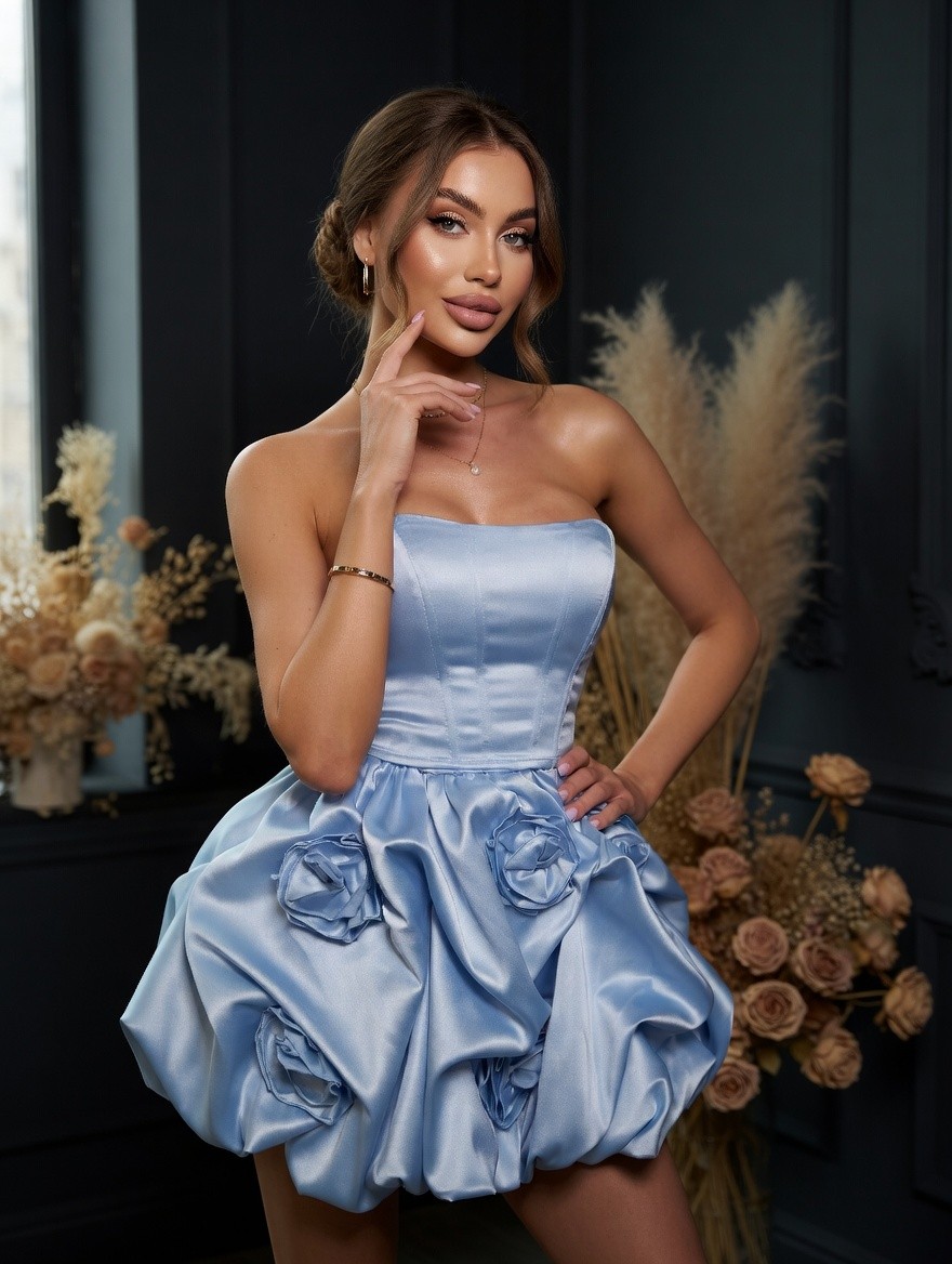 Нарядное голубое мини платье баллон: юбка и корсет