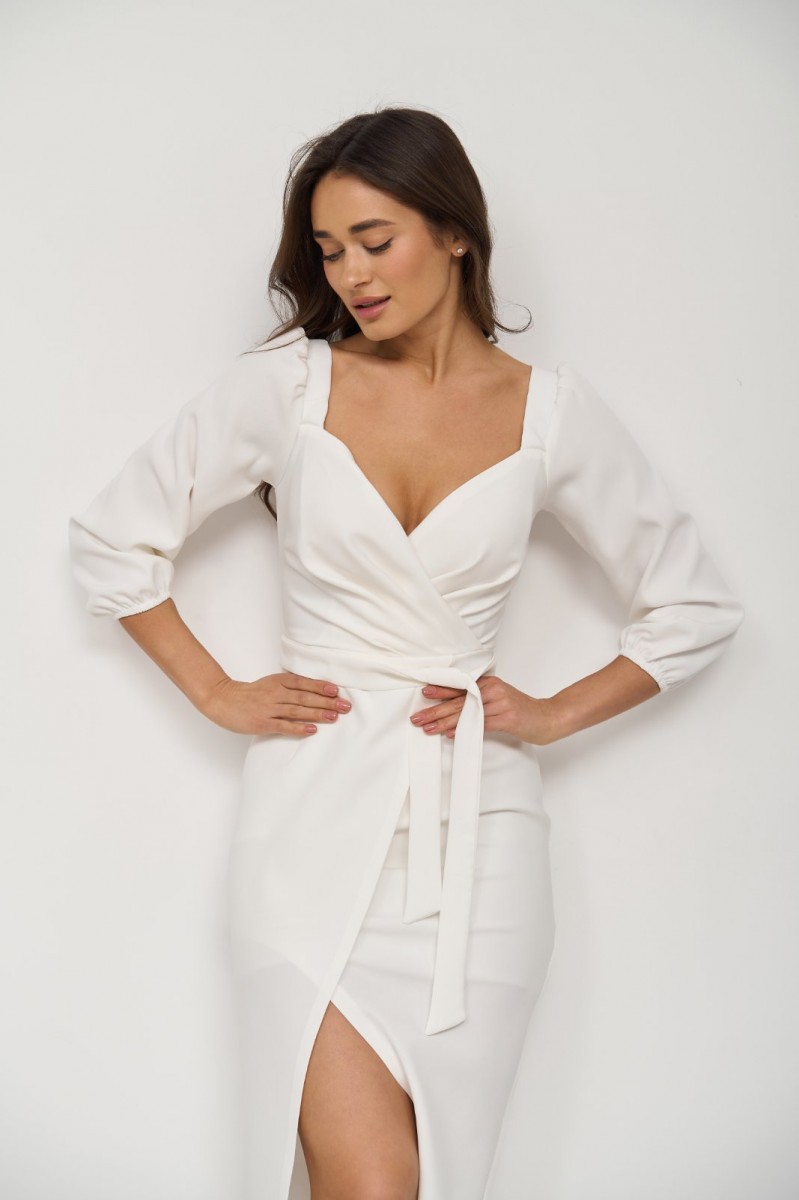 Почувствуйте магию нашего платья миди длины с разрезом, специально разработанного V-образного выреза, который без труда подходит для каждой фигуры. Изготовлено из не тянущейся матовой ткани, но красиво сидит на вашем теле, подчеркивая ваши лучшие черты, скрывая то, что нужно скрыть.