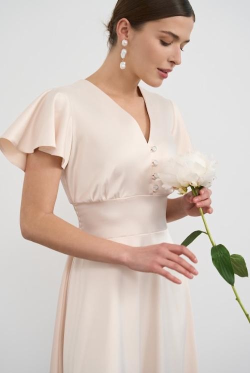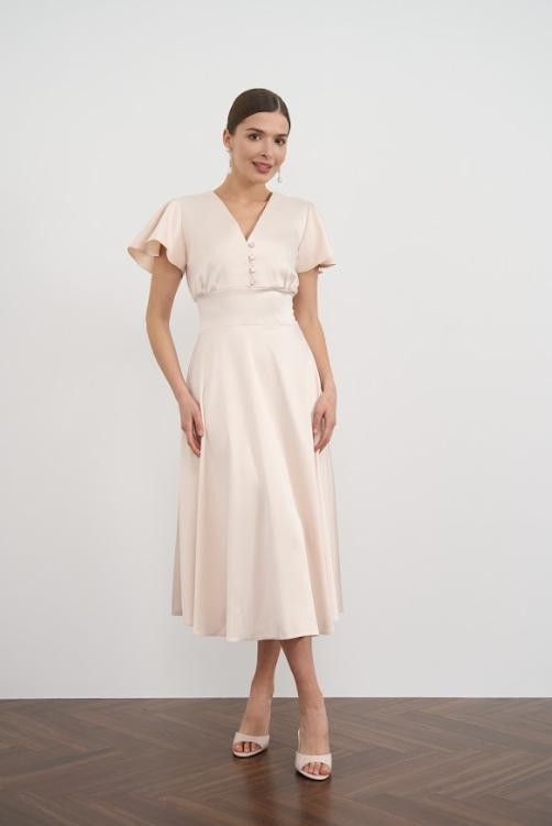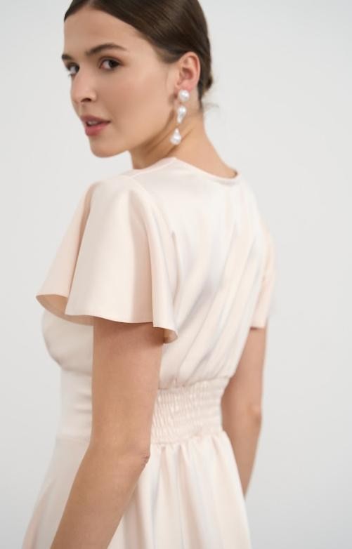 Коктейльное платье миди с рукавом на короткий рукав персикового цвета