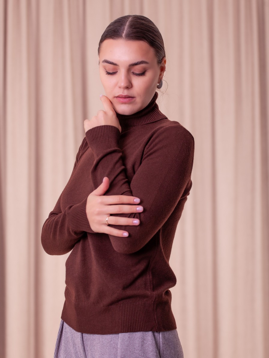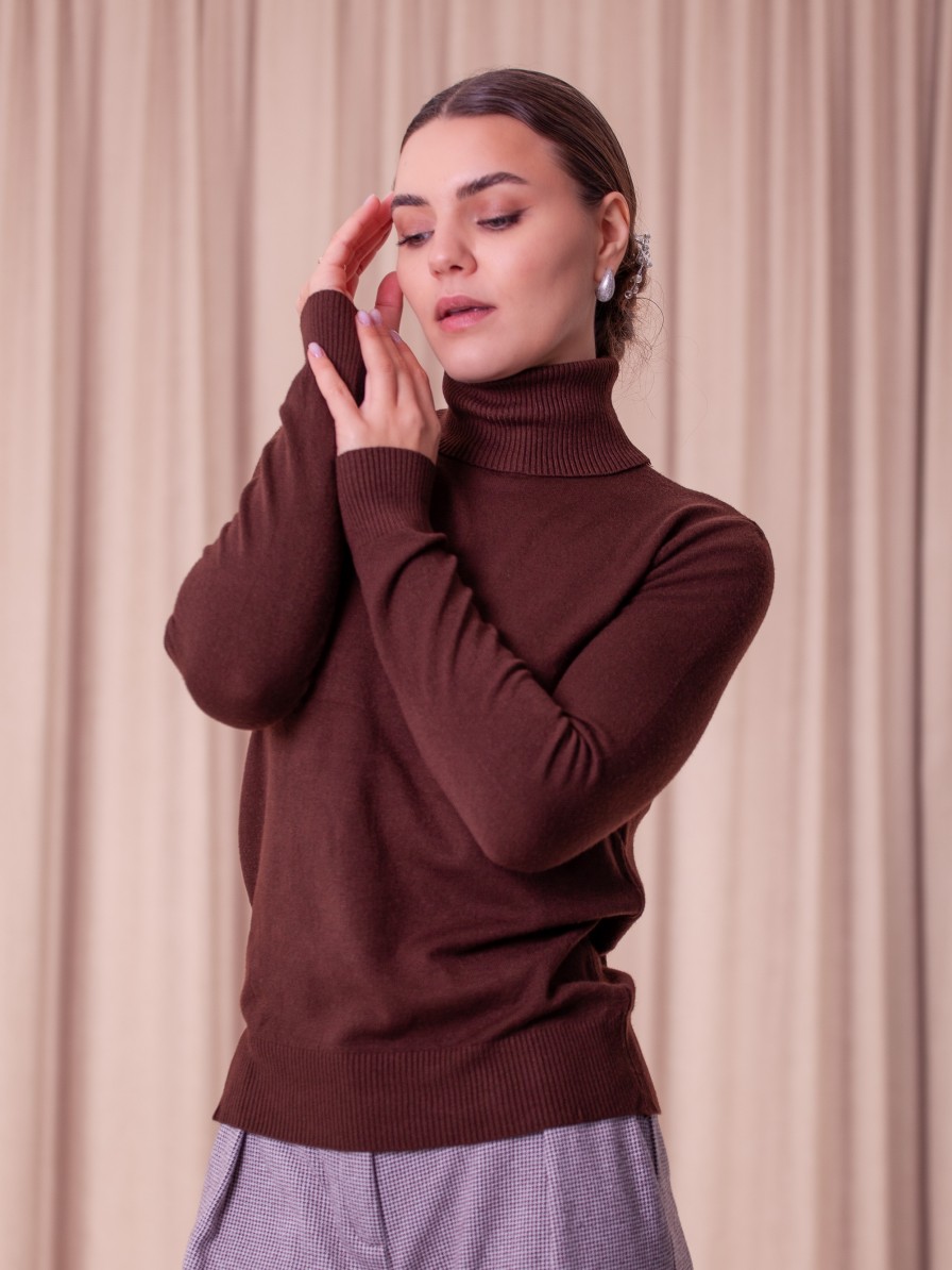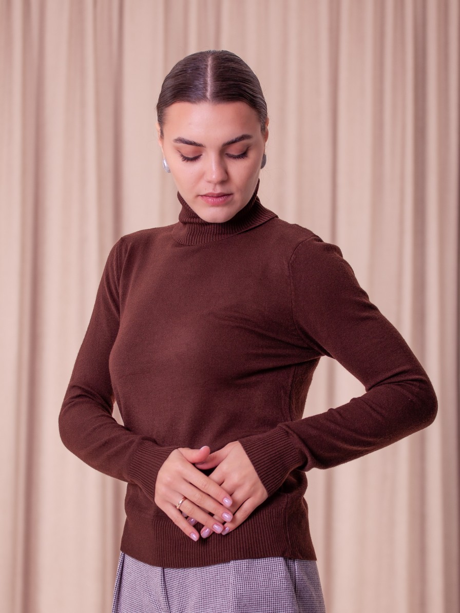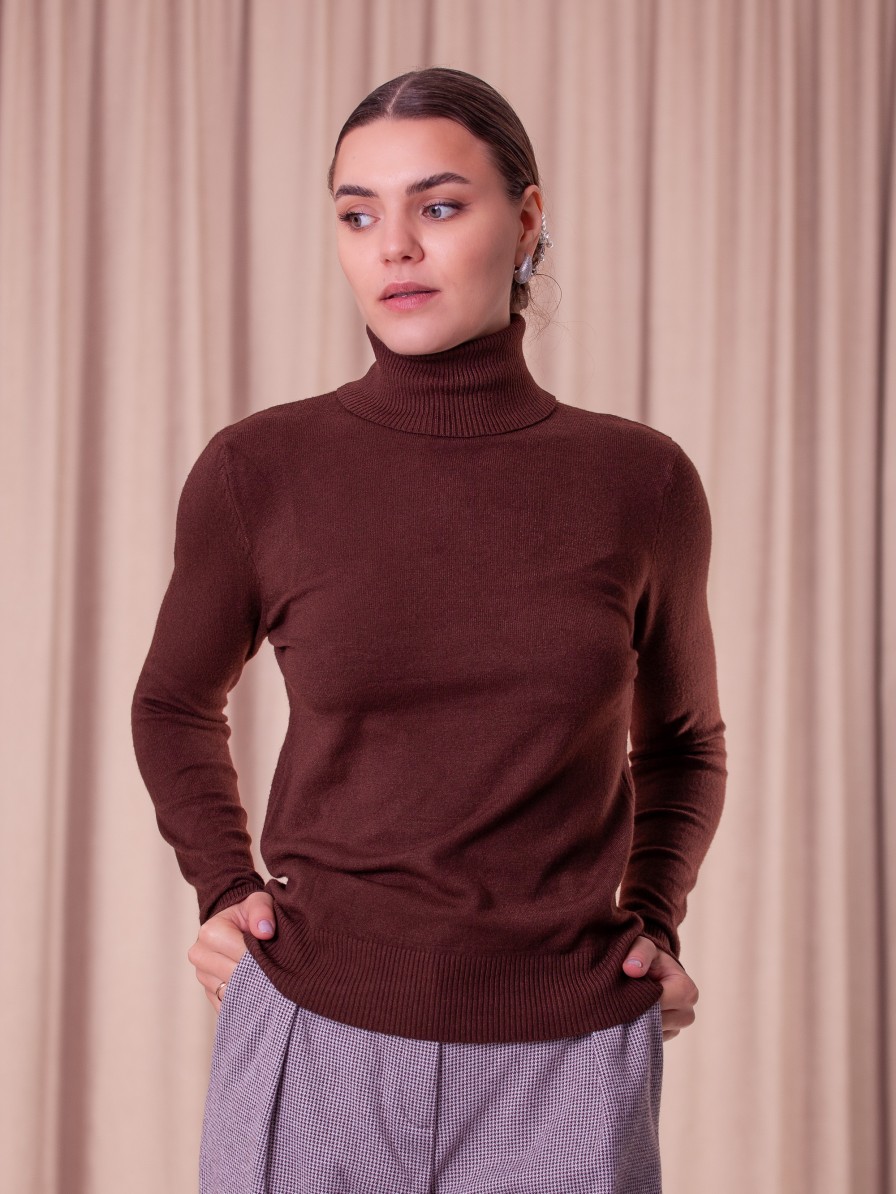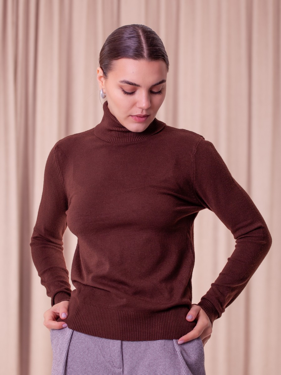 Базовый однотонный гольф с горловиной шоколадного цвета