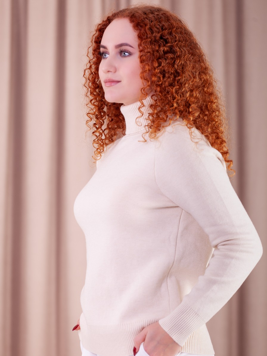 Базовый однотонный свитер с горловиной бежевого цвета с утеплением