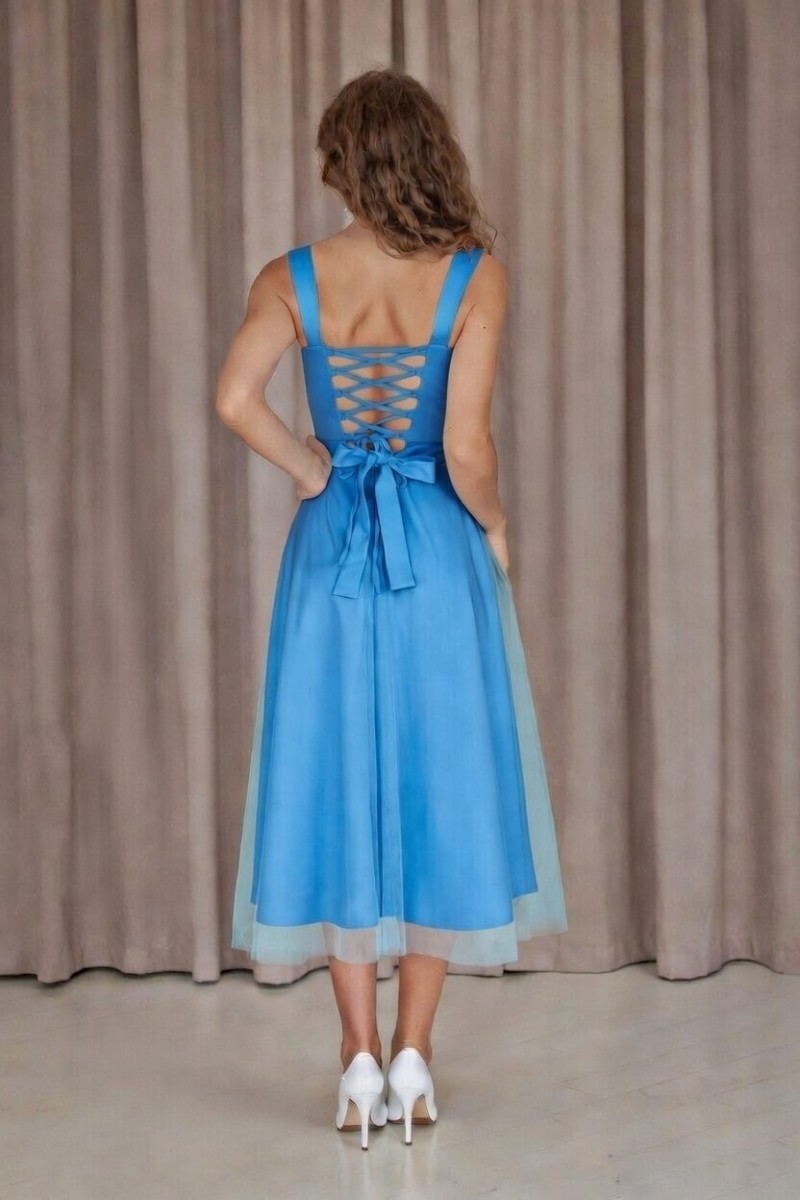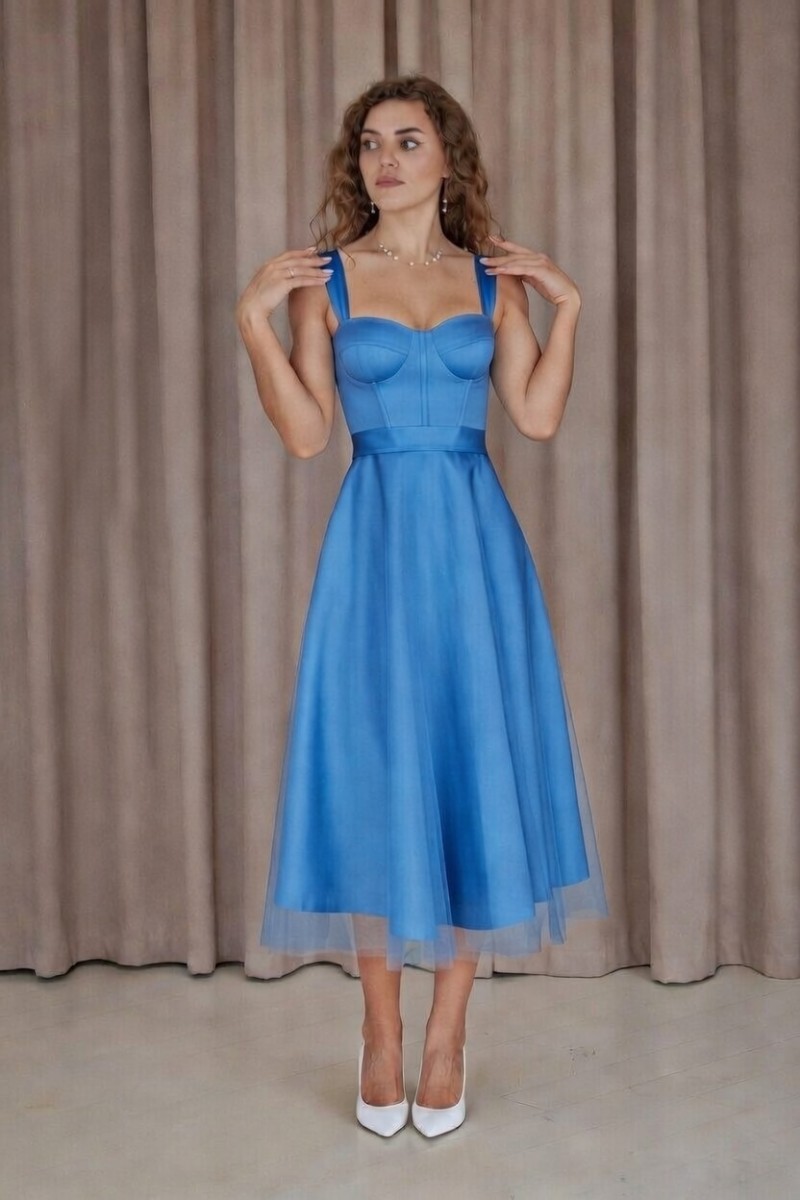 Нарядное корсетное светло синее платье