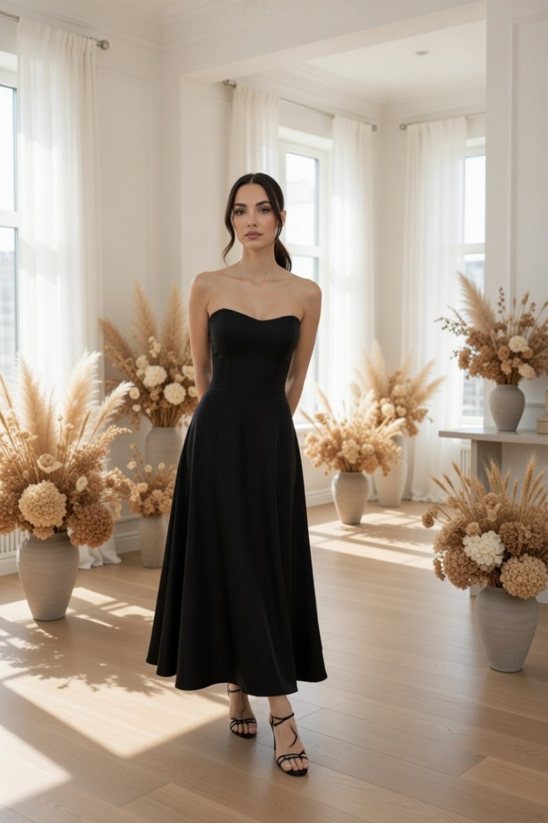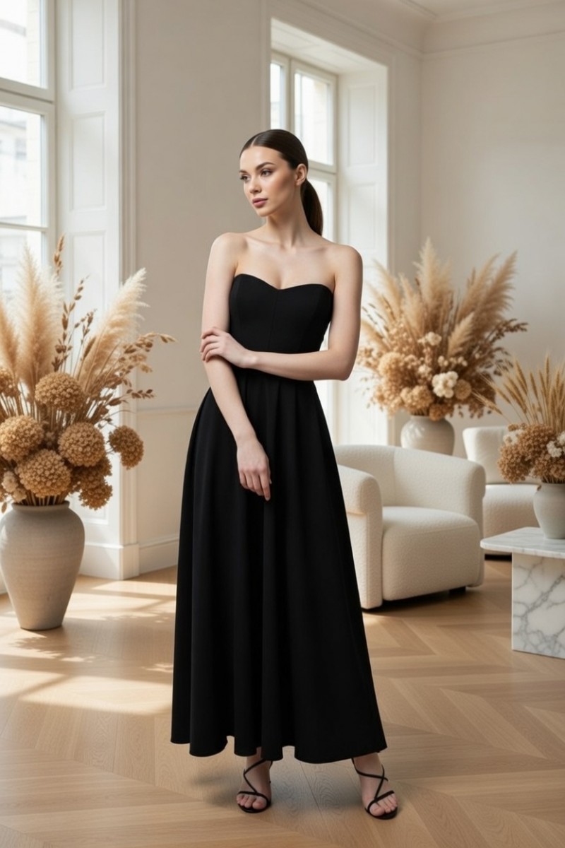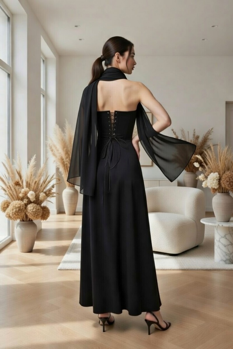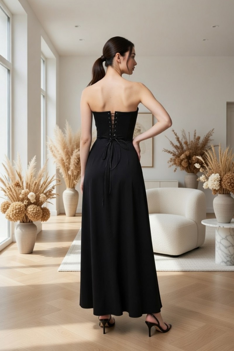 Длинное черное платье с корсетом