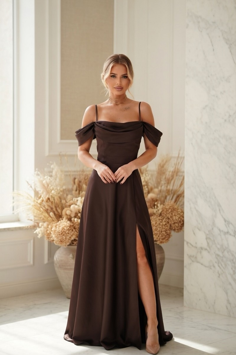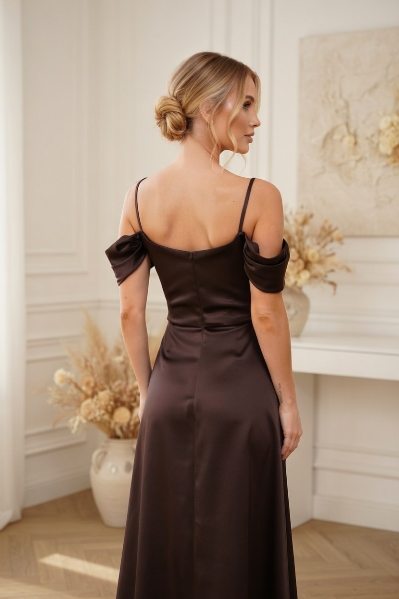 Роскошное нарядное платье А-силуэта коричневого цвета