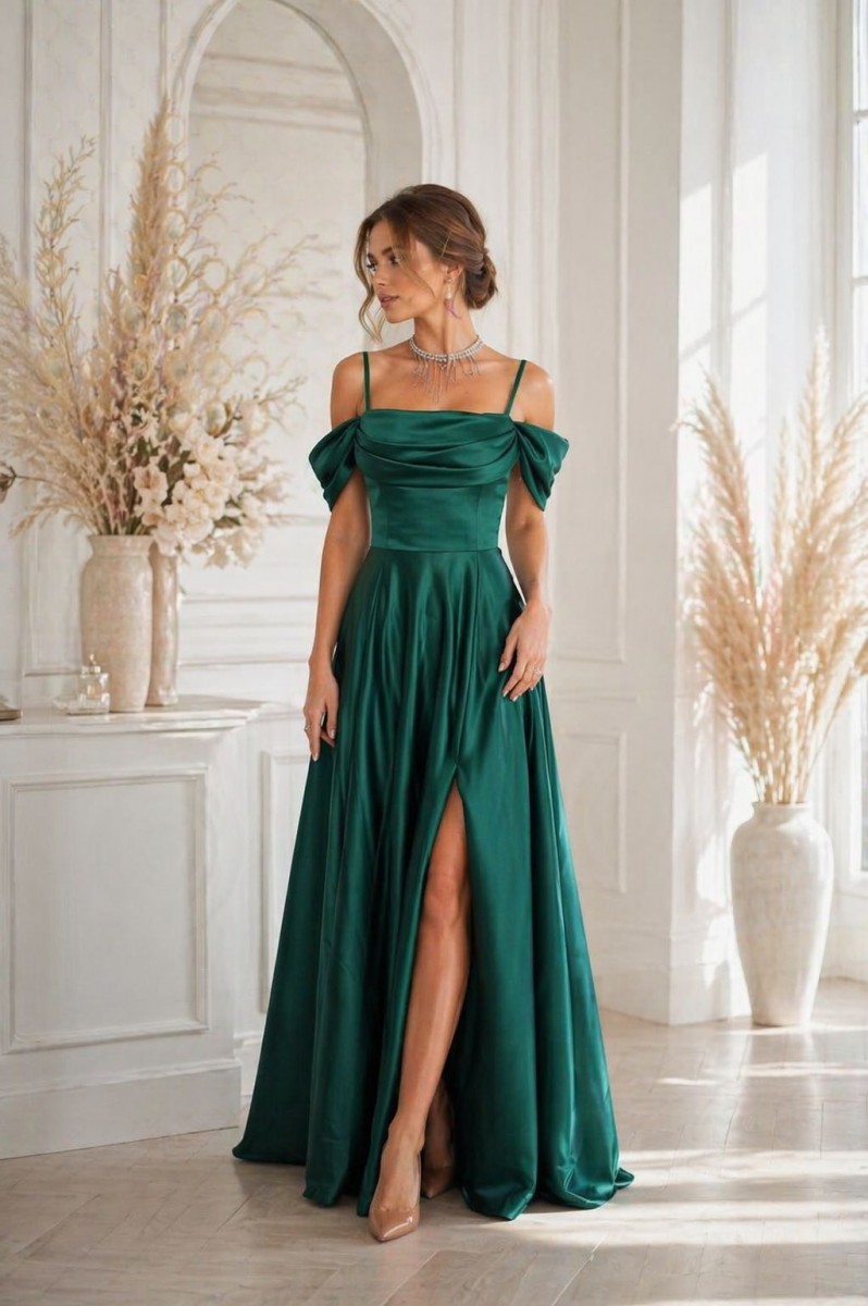 Роскошное нарядное платье А-силуэта изумрудного цвета