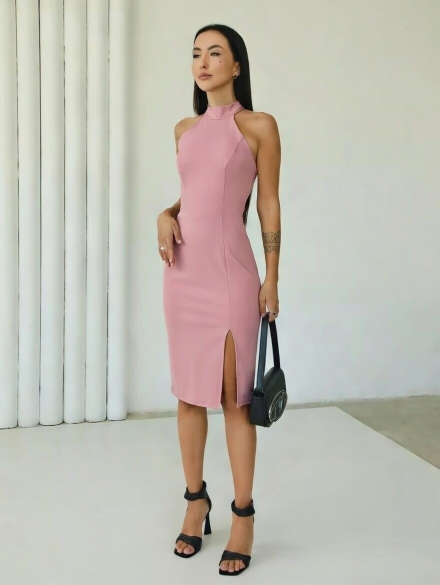 Погрузитесь в самую горячую тенденцию сезона с нашим пастельно-розовым облегающим платьем-миди без рукавов — незаменимой вещью, которая обещает улучшить ваш гардероб и сделать каждое мгновение незабываемым. Это коктейльное платье с открытой спиной, идеально сочетающее в себе элегантность и очарование, станет вашим билетом к тому, чтобы привлечь внимание и зажечь разговор.